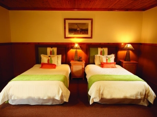 The spacious guest suites feature comfortable beds, luxurious bedding, plasma screen television sets with DSTV satellite channels, and ceiling fans.