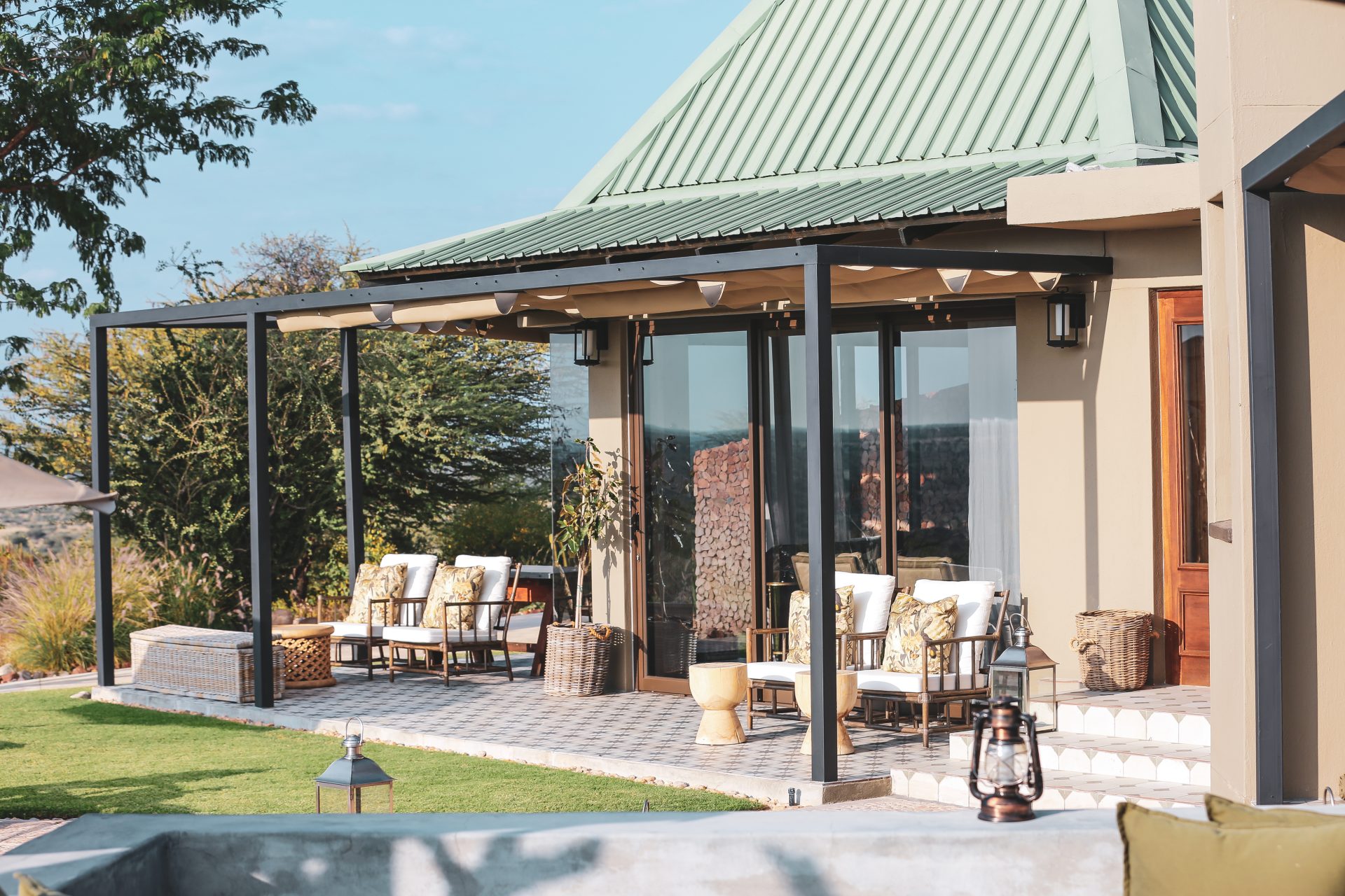 Otjiwa Mountain Lodge, is perched atop a small mountain, providing five exclusive chalets offering panoramic views over the Namibian bush, the Waterberg Massif, and the Omataku mountain range. Each chalet is designed for comfort and privacy, making it ideal for couples or those seeking a tranquil escape .